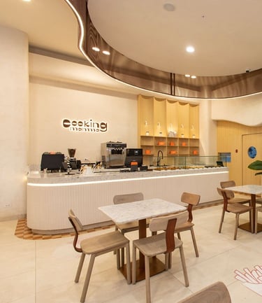 La segunda sucursal de Cooking Mamma nos retó a integrar un concepto innovador dentro de la tienda Stevens sin romper su armonía. No se trataba de competir, sino de complementar: aportar calidez, atraer con diseño y dar vida a una experiencia gastronómica elevada, sutil y memorable