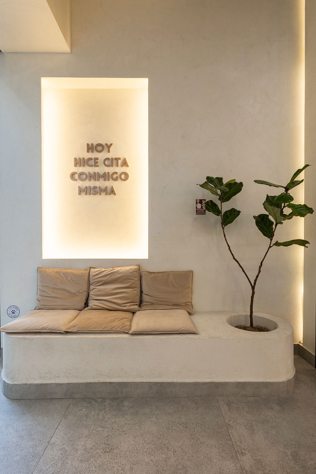 Cada zona —manicure, lavado, barbería, styling— fue pensada para ofrecer privacidad, confort y armonía visual. La circulación fluye entre áreas delimitadas por niveles, vegetación colgante y transiciones suaves de piso, logrando una experiencia intuitiva tanto para el usuario como para el equipo..